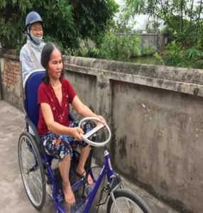 Sống tinh thần của Đức Kitô làm bác ái không phân biệt lương giáo, ban Bác Ái xứ Như Tân đã giới thiệu gia đình ông với Caritas giáo phận xin giúp đỡ, thấy được nhu cầu của bà, nên cha giám đốc đã đồng ý cho bà chiếc xe lắc, giúp bà có cơ hội đi thăm con cháu và mọi người.