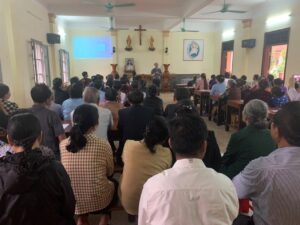 Kết thúc ngày tập huấn, các Tham Dự Viên như còn tiếc nuối, muốn nghe thêm giảng viên chia sẻ. Các Tham Dự Viên cùng nhau chia sẻ bữa cơm huynh đệ, ai cũng cảm thấy vui, muốn sớm có được buổi tập huấn nữa để cùng nhau học hỏi, chia sẻ cho nhau những gánh nặng trong cuộc đời.