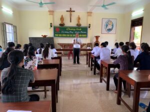 Sau đó cha giám đốc đã nói lời cám ơn Qúy Ân Nhân đã tài trợ cho Caritas Phát Diệm để Caritas có cơ hội đồng hành với các em, giúp các em có hành trang vững bước vào cuộc sống. Xin Qúy Ân Nhân tiếp tục thương mở rộng vòng tay giúp đỡ để Caritas Phát Diệm có thêm nhiều cơ hội đồng hành với các em học sinh có hoàn cảnh khó khăn.