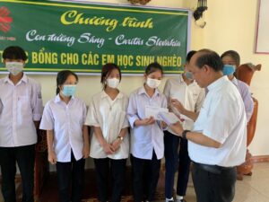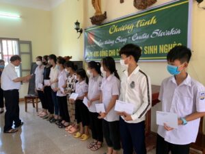 Động viên tinh thần, cũng như khích lệ các em cho năm học tới, hôm nay Chúa nhật ngày 27/06/2021, cha giám đốc Caritas Phát Diệm trao học bổng từ chương trình Con Đường Sáng – do Caritas Slovakia giúp đỡ các em. Trước khi trao học bổng, cha giám đốc gặp gỡ các em cùng quý phụ huynh, giúp các em biết trân trọng những gì đang được hưởng, nhất là lòng biết ơn và cám ơn, biết ơn Chúa, biết ơn Thượng Đế, các em không cùng tôn giáo hãy biết Trời –Phật, biết ơn tổ tiên ông bà cha mẹ, thày cô, quý ân nhân, những người đã đang đồng hành giúp đỡ để các em thực hiện giấc mơ chắp cánh vào đời và trong mọi lãnh vực của cuộc sống.