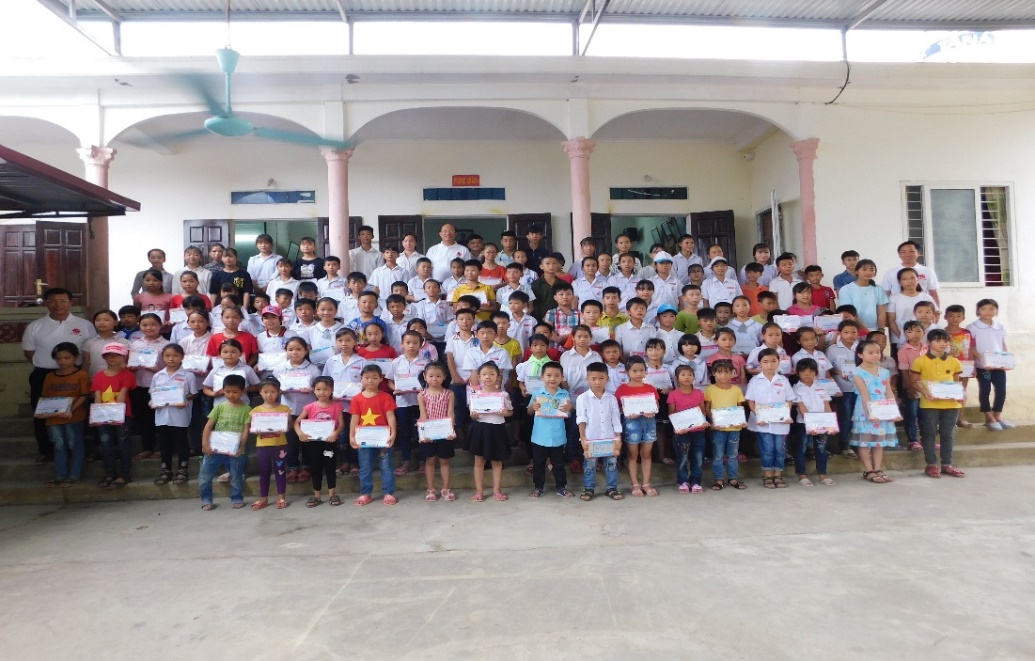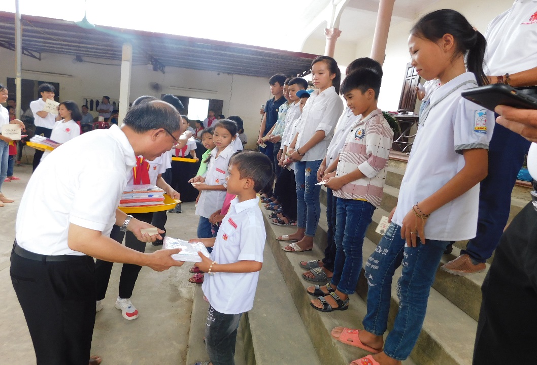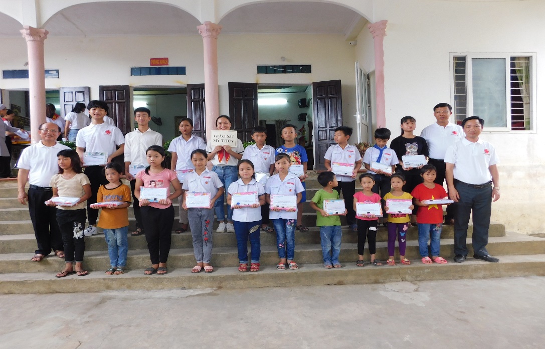 1. Để chuẩn bị cho năm học mới 2019-2020, được sự hỗ trợ của quý ân nhân, sáng ngày 14/07/2019 tại giáo xứ Phát Diệm và sáng ngày 16/07/2019 tại giáo xứ Mỹ Thủy, Qúy Ân Nhân cùng với ban Caritas Phát Diệm đã trao 660 xuất học bổng cho các em học sinh từ cấp 1 đến cấp 3 của một số giáo xứ trong Giáo Phận. Trước khi các em nhận học bổng, Đức Cha giáo phận đã gặp gỡ chia sẻ tâm tình cho các em, ngài cám ơn quý ân nhân từ Sài Gòn là những người buôn bán bình thường, nhưng đã hy sinh bớt chút phần thu nhập, chi tiêu trong gia đình để giúp đỡ các em học sinh trong Giáo Phận. Ngài cũng cho các em và mọi người thấy lối sống đơn sơ, nghèo của bác trưởng đoàn, để dành tiền đi giúp học sinh nghèo, hy sinh vô vị lợi vì người khác. Qua đó Đức Cha giáo phận muốn nói với mọi người rằng, ai ai cũng có thể dành dụm chia sẻ phần của mình cho người khác, mọi người hãy tránh sự tiêu sài lãng phí. Đức Cha cũng dạy các em khi nhận sự giúp đỡ phải biết sử dụng cho đúng, không lợi dụng lòng tốt của người khác, Đức Cha khuyên các em chịu khó học, không được trốn học, không được copy bài làm hư hỏng đời sống của mình, với sự quan tâm này các em hứa với Đức Cha chịu khó học hơn, ngoan hơn.